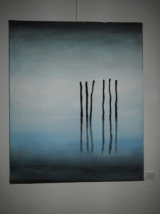 Die Werke sind im OG an den Säulen zu sehen. Außerdem haben wir die gemeinschaftliche Ausstellungsfläche im EG, auf der alle zentral die Werke präsentieren. Dort kann jede*r Künstler*in auch persönlich mit den Besuchern ins Gespräch kommen und ihre*seine Arbeiten dort verkaufen.