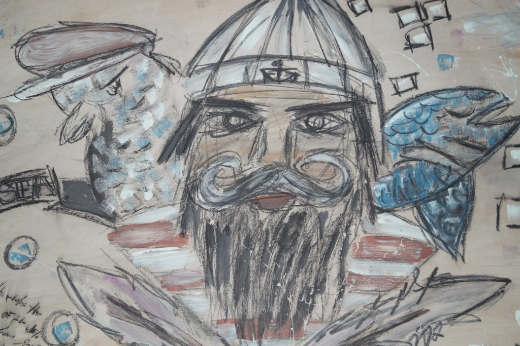 Aussteller Body Shop im OG // Streifenbilder // Öl-Zeichnen // Biografie als Streifenbild // Tel. 01773330310 // atelier@echte-helden-kiel.de // www.echte-helden-kiel.de