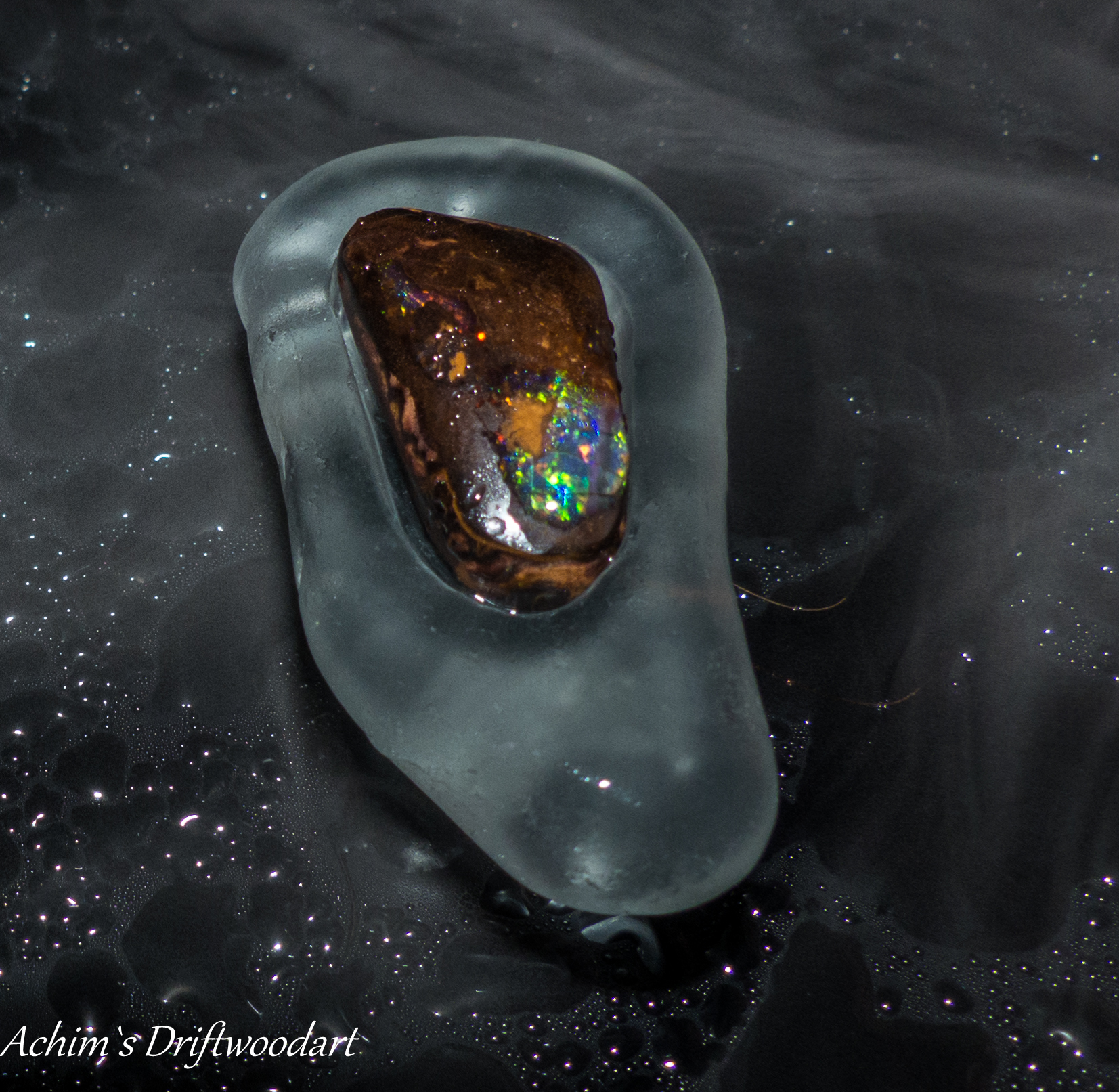 Seeglasanhänger mit echten Opal