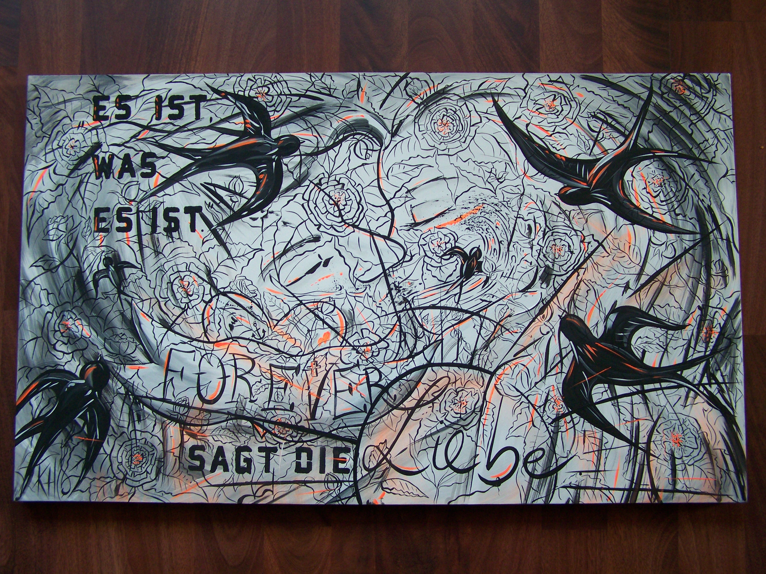 Neben meinen frei entworfenen Motiven fertige ich auch gerne Wunschbilder. Nach Abstimmung des Motives, der Größe und der Farbgebung entstehen so individuelle Bilder auf Leinwand mit einem persönlichen Bezug. Die Bilder können auch mit Namen, dem Geburtsdatum oder dem Sternzeichen versehen werden.