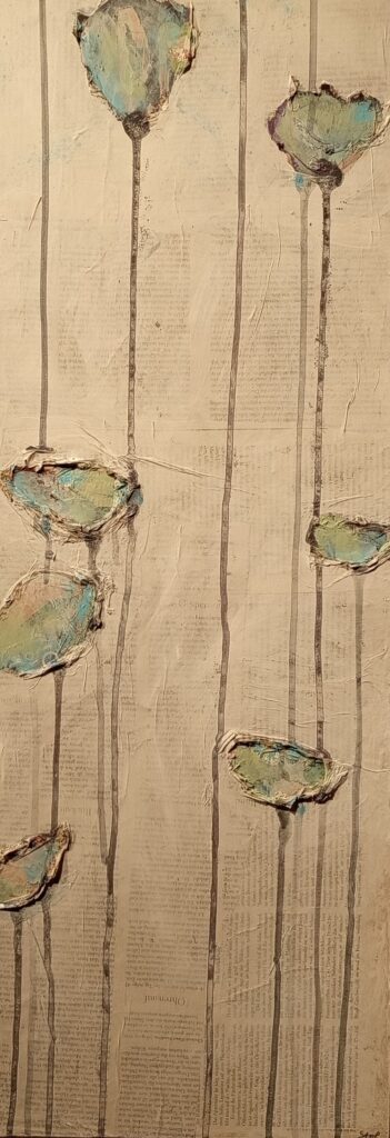 mein Name ist Bärbel Stolzenburg. Ich lebe als freischaffende Künstlerin in Kiel. Da ich überwiegend abstrakt und experimentell arbeite, nutze ich neben Acrylfarben auch gerne Recyclingmaterialien. Meine Bilder baue ich im Mixed-Media-Stil auf und lasse mich von meinen eigenen Spuren auf der Leinwand inspirieren anstatt einem Plan zu folgen. Oft finden sich neben farbreduzierten, z.T. weiß lasierten Werken gewaltige Spachtelmassen in Naturtönen. Ich freue mich über BesucherInnen- im Erdgeschoß auf der Ausstellungsfläche, im Obergeschoß im Schuhladen Forckschuhe oder aber bei mir im Atelier in der Holtenauer Straße, Kiel-Wik!